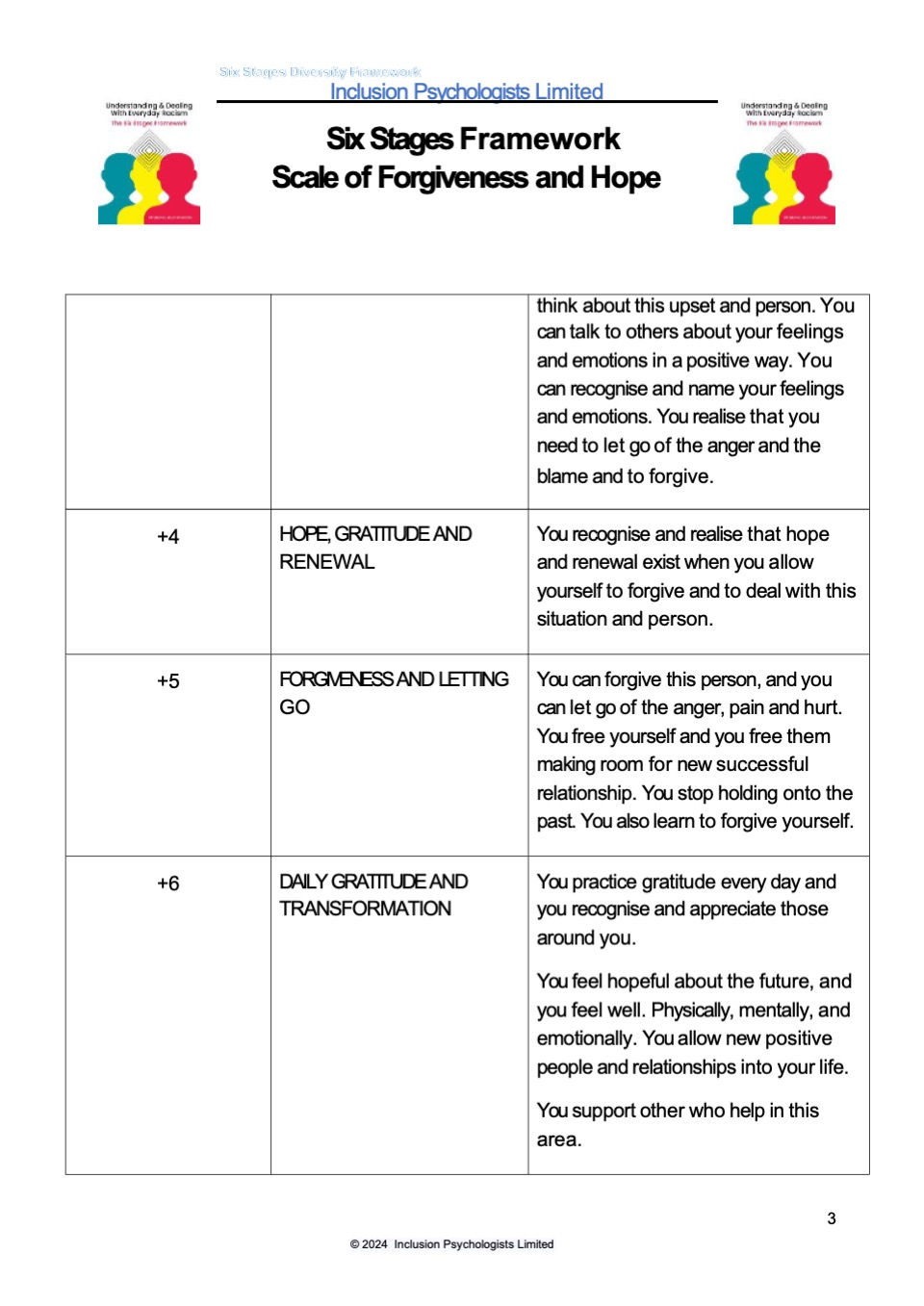 Check out the Six Stages Framework Scale of Forgiveness and Transformation.